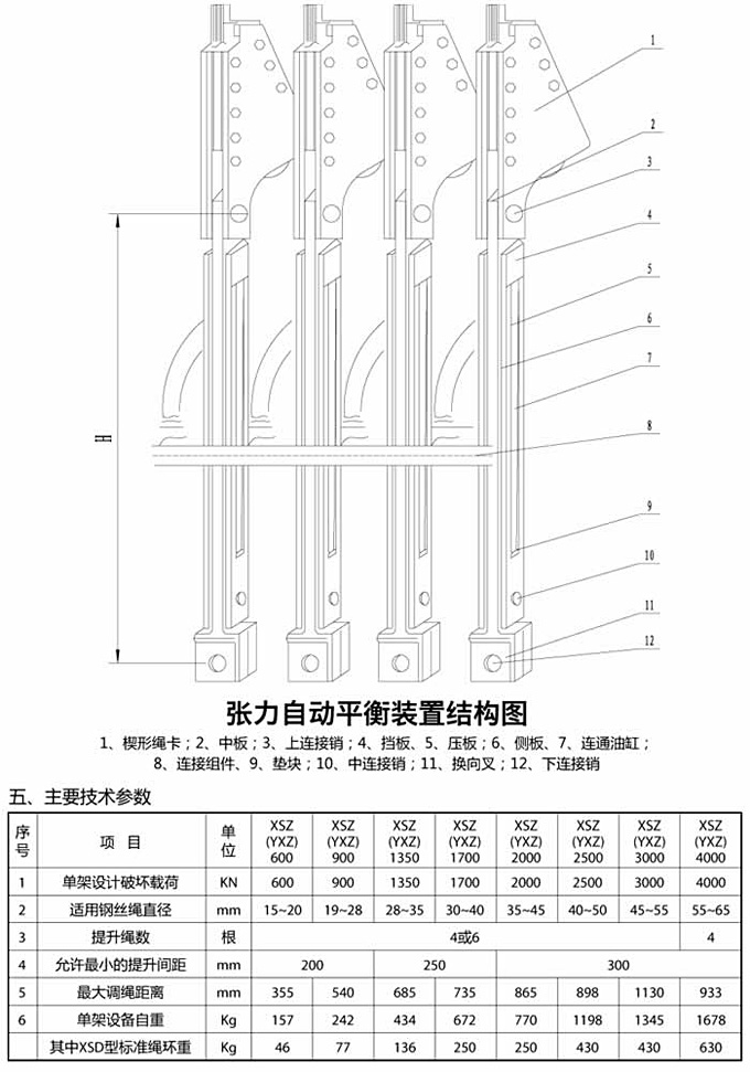 1.能使提升鋼絲繩在動(dòng)靜狀態(tài)下實(shí)現(xiàn)張力自動(dòng)平衡,不需停車調(diào)整。