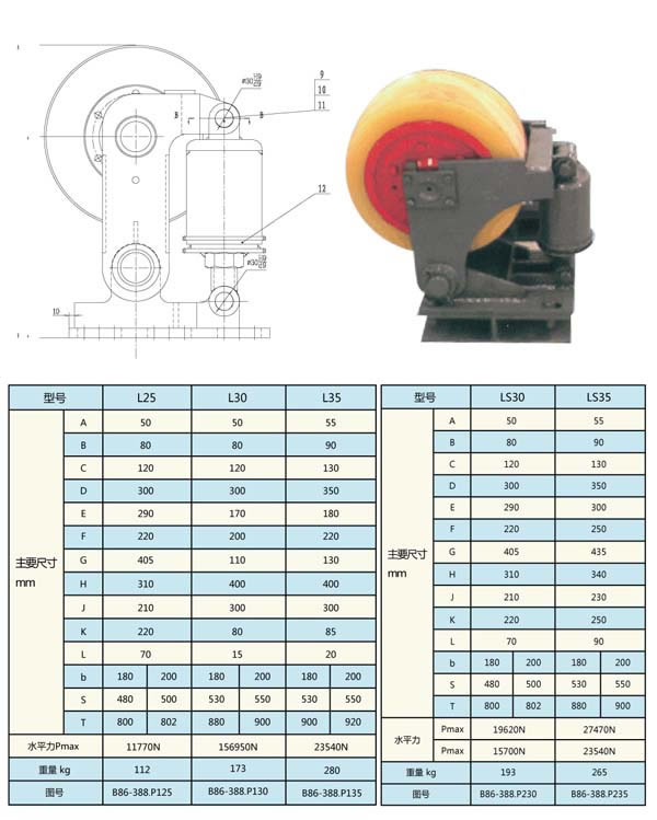 4. 可用緩沖裝置來方便的調(diào)整滾輪與罐道間的位置,罐道與罐耳滑動摩擦變?yōu)闈L動摩擦,因此減少了動力消耗,降低了噪音,罐道和罐耳的磨損也大大降低,從而提高了罐道和罐耳的使用壽命。